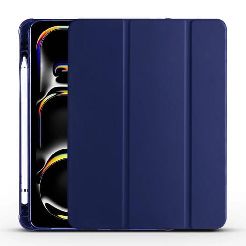 Pour iPad Pro 11 2024 Étui pour tablette intelligente en cuir TPU à 3 volets avec fente pour stylo (bleu foncé)