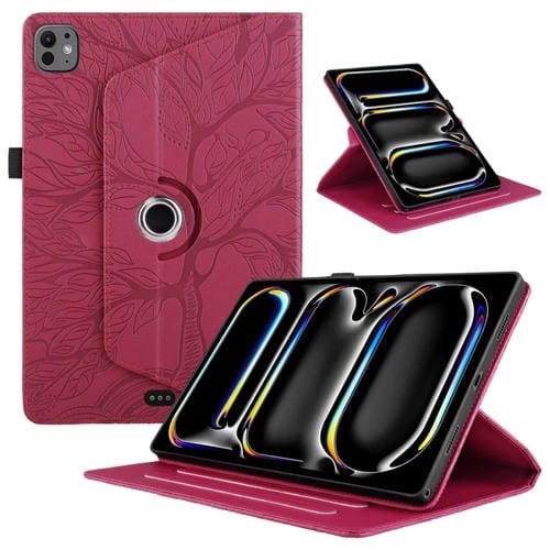 Funda de Cuero para iPad Pro 11 (2024) con Rotación y Relieve Tree Life (Roja)