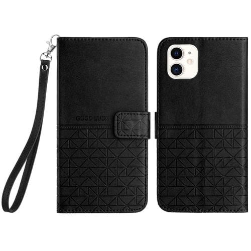 Funda para iPhone 11 Cuero Textura Rómbica con Cordón (Negro)