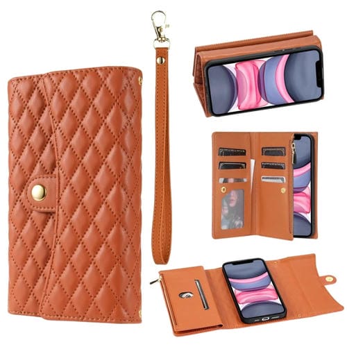 Funda para Teléfono iPhone 11 Cuero Rómbico Billetera MultiTarjeta con Cremallera (Marrón)