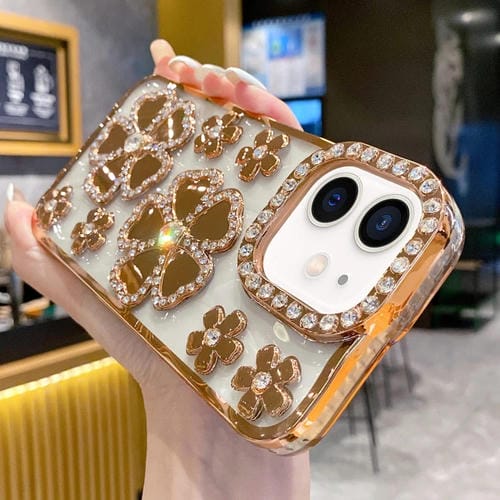 Pour iPhone 11 Étui de téléphone en TPU avec diamant de fleur électrolytique (or)