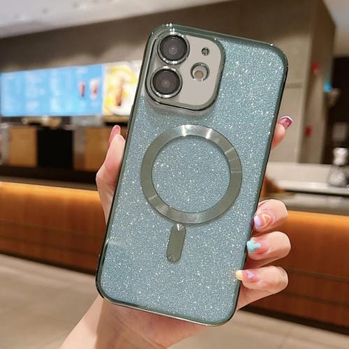 Funda para Teléfono TPU iPhone 11 Galvanoplastia Purpurina Magsafe (Verde)