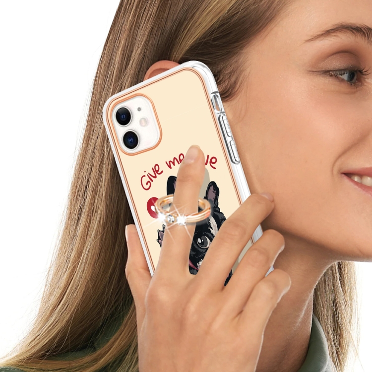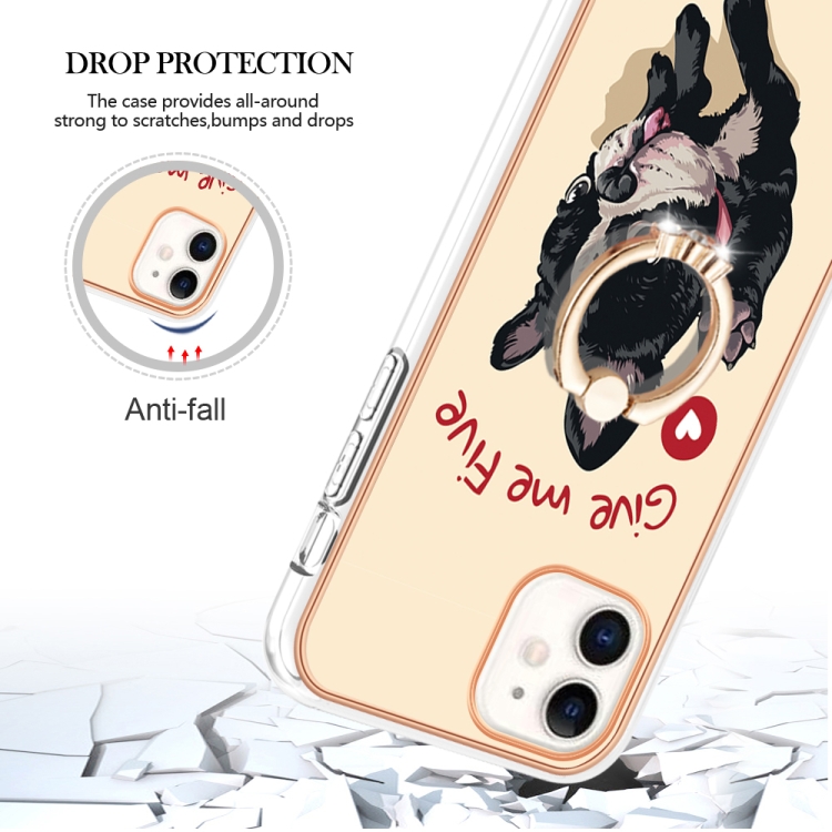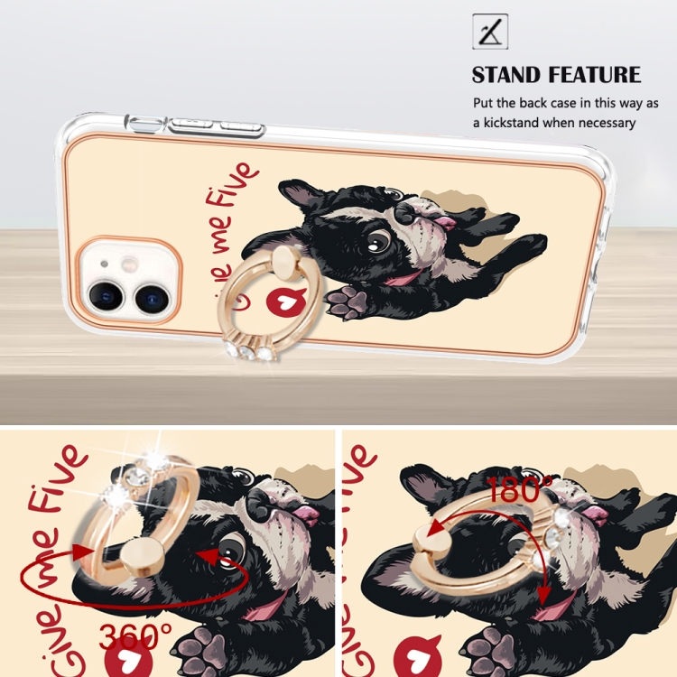 Funda para iPhone 11 Lucky Dog Galvanoplastia IMD Doble Cara con Soporte para Anillo