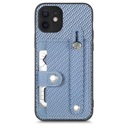 Funda para iPhone 11 Muñequera Kickstand Tarjeta Monedero Contraportada Caja con Herramienta Cuchillo (Azul)