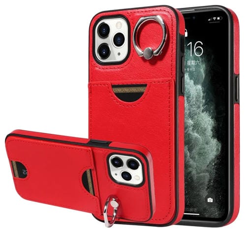 Funda para Teléfono iPhone 11 Pro Soporte Anillo Ranura Tarjeta Textura Pantorrilla (Rojo)