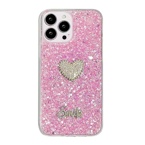 Pour iPhone 11 Pro Coque de téléphone en TPU époxy avec paillettes étoilées et cœur en diamant (rose)