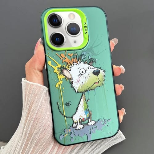 Funda para Teléfono iPhone 11 Pro Imd Animal Graffiti TPU + PC Doble Cara (Perro Verde Blanco)