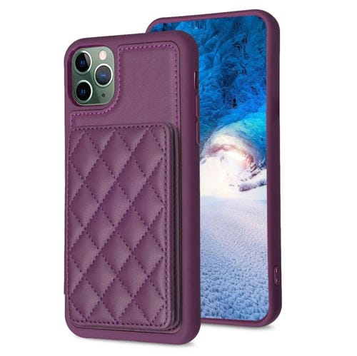 Funda para Teléfono Bf25 Square Plaid Card Bag Holder para iPhone 11 Pro Max (Morado Oscuro)