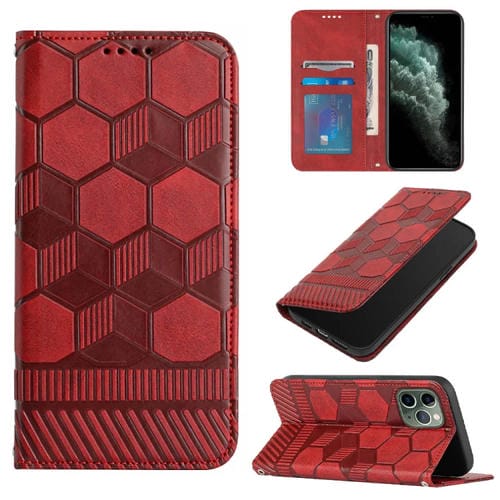 Funda de Teléfono para iPhone 11 Pro Max con Tapa de Cuero Magnético y Textura de Fútbol (Rojo)