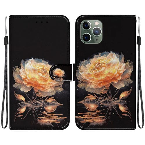 Funda para teléfono iPhone 11 Pro Max Cuero con Dibujo y Textura de Cristal (Peonía Dorada)