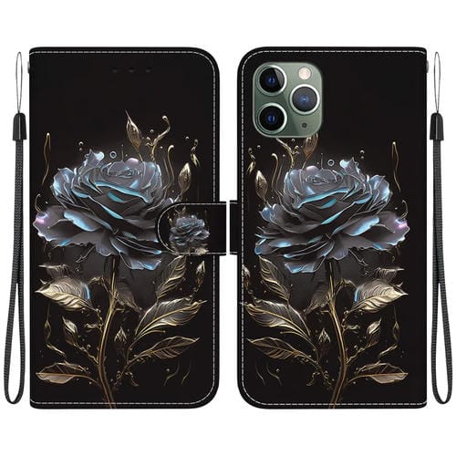Funda para Teléfono iPhone 11 Pro Max Cuero Dibujo Coloreado Textura de Cristal (Rosa Negra)