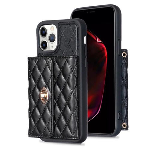 Pour iPhone 11 Pro Max Boucle en métal horizontale Étui de téléphone en cuir rhombique (Noir)