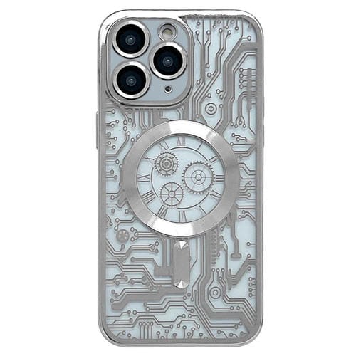 Estuche para Teléfono iPhone 11 Pro Max Patrón de Placa de Circuito Electrochapado Magsafe (Plata)