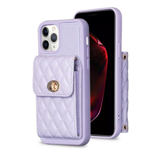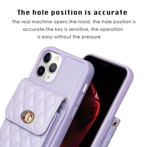 Funda para Teléfono iPhone 11 Pro Max Vertical Metal Hebilla Monedero Rombico Cuero (Púrpura)