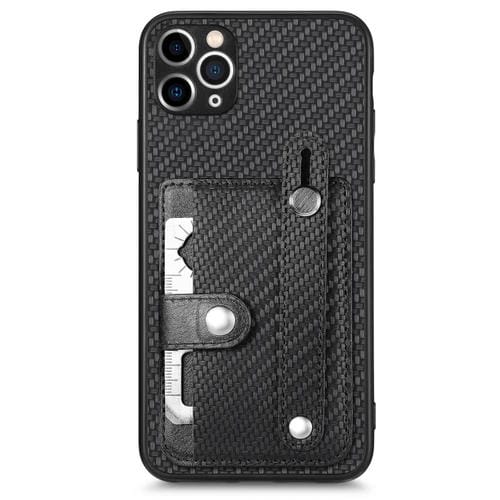 Pour iPhone 11 Pro Max bracelet béquille carte portefeuille couverture arrière étui de téléphone avec outil de couteau (noir)