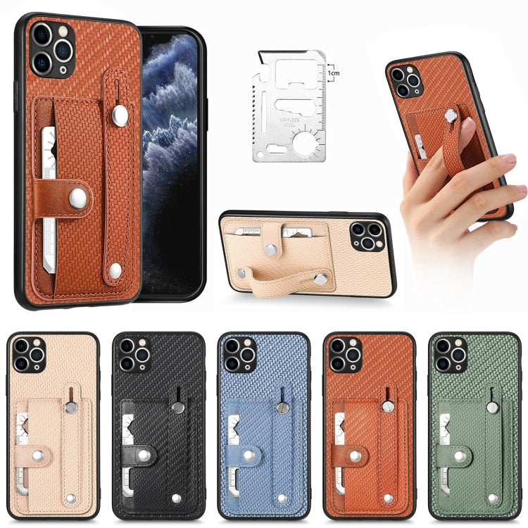 Pour iPhone 11 Pro Max bracelet béquille carte portefeuille couverture arrière étui de téléphone avec couteau à outils (kaki)