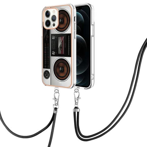 Estuche para Teléfono iPhone 12/12 Pro IMD Doble Cara Galvanoplastia Cordón (Radio Retro)