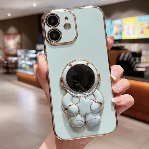 Estuche para Teléfono Embrace Stars iPhone 12 Galvanoplastia con Soporte Astronauta (Verde)