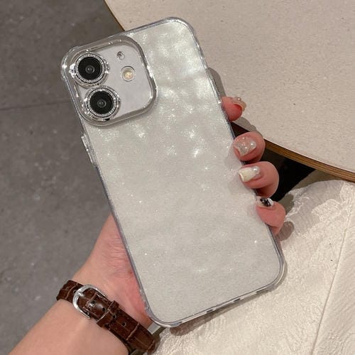 Estuche híbrido para teléfono iPhone 12 TPU Ripple Glitter PC (Transparente)