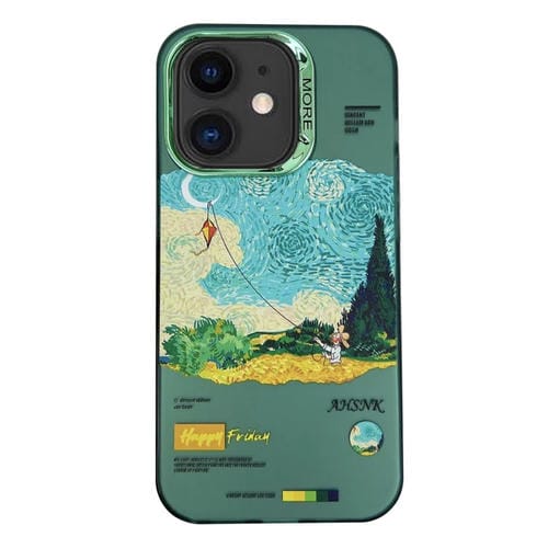 Pour iPhone 12 Étui de téléphone avec illustration de lentille galvanisée (Vert)