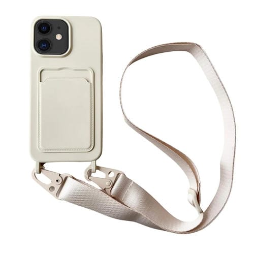 Funda para Teléfono iPhone 12 Silicona Líquida Ranura para Tarjeta y Cordón (Blanco)