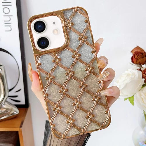 Funda para Teléfono TPU Galvanizada iPhone 12 con Flor de Estrella y Papel con Brillo Degradado (Dorado)