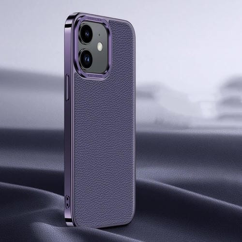 Funda de teléfono iPhone 12 Litchi Texture Cuero Genuino (Púrpura)