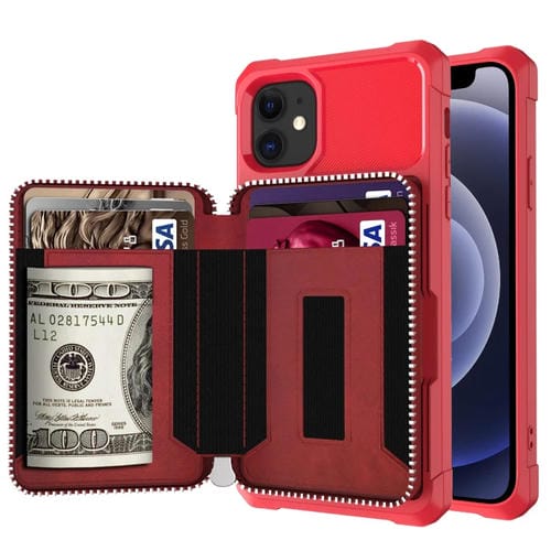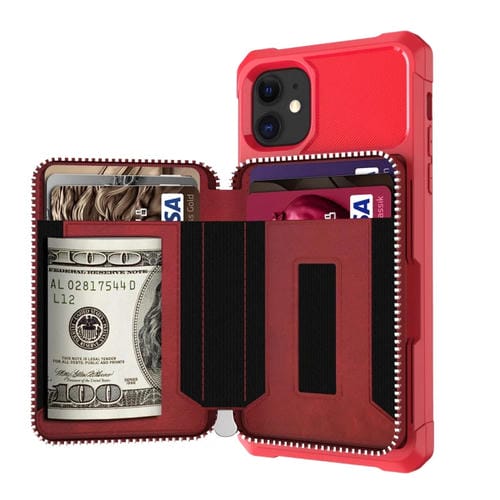 Funda Trasera iPhone 12 Mini Cremallera Billetera Tarjeta Bolsa PU (Rojo)
