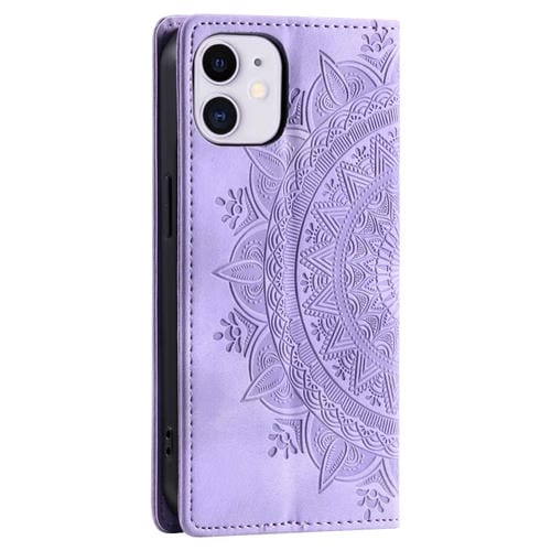 Estuche para Teléfono iPhone 12 Mini Cuero Magnético con Relieve de Tótem (Púrpura)