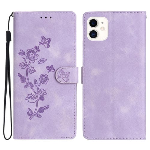 Funda para iPhone 12 Mini Cuero Estampado Flores en Relieve (Púrpura)
