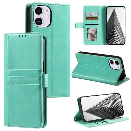 Funda de Cuero para Teléfono iPhone 12 Mini con Billetera para 6 Tarjetas (Verde)