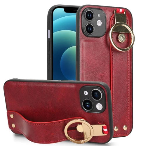 Funda Trasera para iPhone 12 Mini Muñequera de cuero (Rojo)