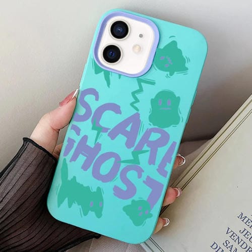 Estuche híbrido para iPhone 12 Mini Scared Ghost PC con TPU (Cian Cielo)