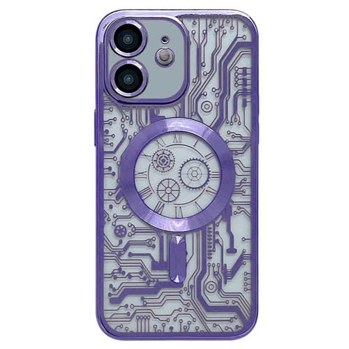 Caja del teléfono Magsafe para iPhone 12 Patrón de Placa de Circuito Electrochapado (Púrpura)