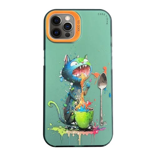Funda para Teléfono iPhone 12 Pro Cartoon Animal Graffiti PC y TPU (Gato Azul)