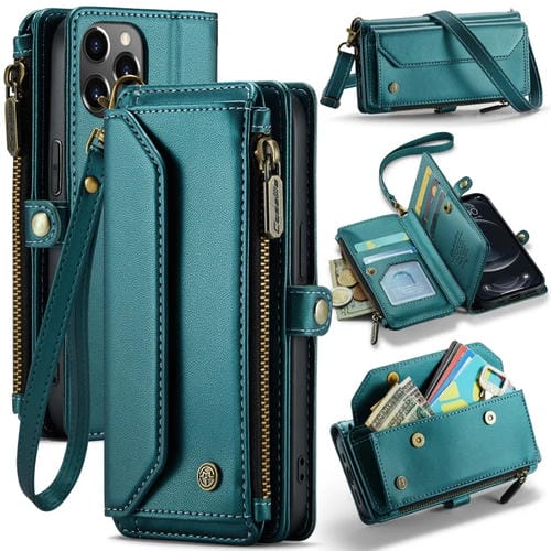 Funda para iPhone 12 Pro Caseme C36 Cartera con Ranuras para Tarjetas y Cremallera Antirrobo Rfid (Azul-Verde)