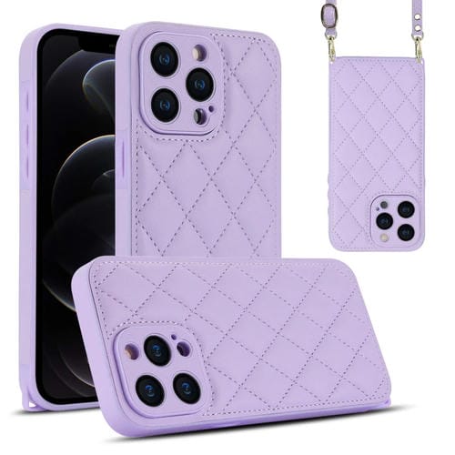 Estuche para Teléfono iPhone 12 Pro Textura Rómbica Cordón Doble (Púrpura)