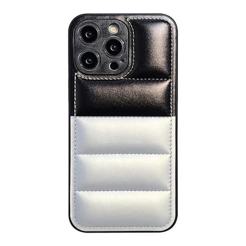 Funda para Teléfono iPhone 12 Pro Chaqueta de Plumón con Bloques de Color (Negro Plateado)