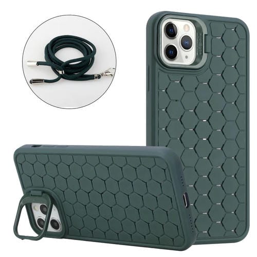 Pour iPhone 12 Pro Porte-objectif rayonnant en nid d'abeille Étui de téléphone Magsafe avec lanière (vert)