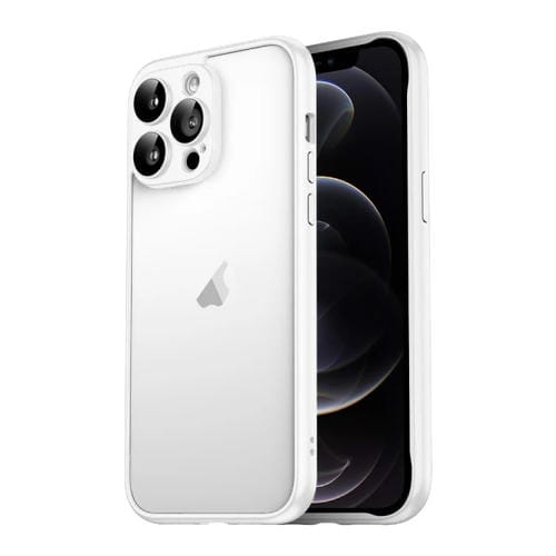Funda para iPhone 12 Pro Macaron PC Marco de Borde Puro con Película de Vidrio para Lentes (Blanco)