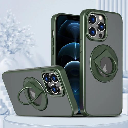 Funda para teléfono iPhone 12 Pro Max Anillo Giratorio con Soporte Magnético (Verde)