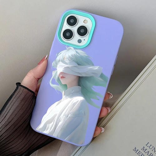 Funda híbrida para iPhone 12 Pro Max Blindfold Girl PC y TPU (Púrpura)
