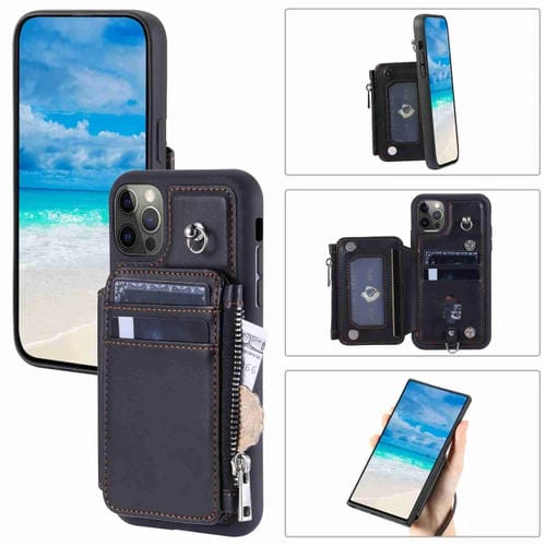 Estuche para Teléfono iPhone 12 Pro Max Rfid con Ranuras para Tarjetas con Cremallera (Negro)