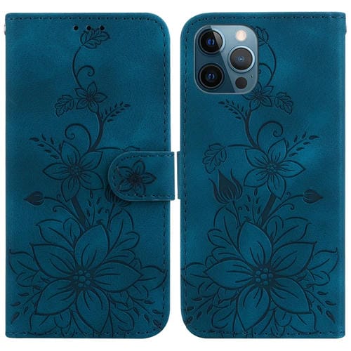 Funda para Teléfono Apple iPhone 12 Pro Max Cuero con Relieve Lily (Azul Oscuro)
