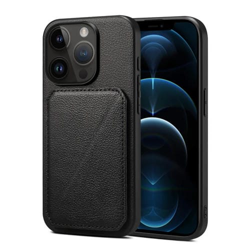 Funda Trasera iPhone 12 Pro Max Piel de Becerro de Imitación con Soporte (Negro)