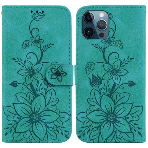 Funda para teléfono iPhone 12 Pro Max Lily cuero en relieve (Verde)
