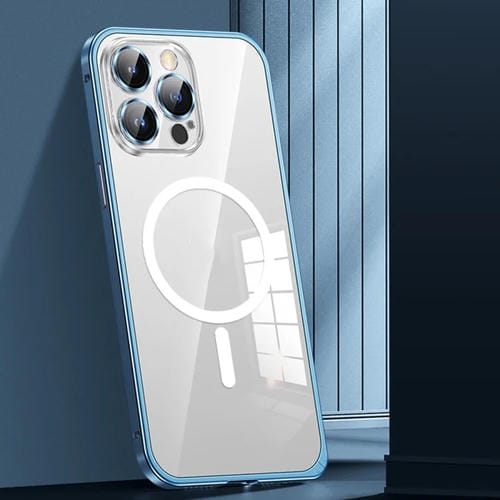 Caja de teléfono iPhone 12 Pro Max Magsafe Spring Buckle Metal con Protección de Lente (Azul)