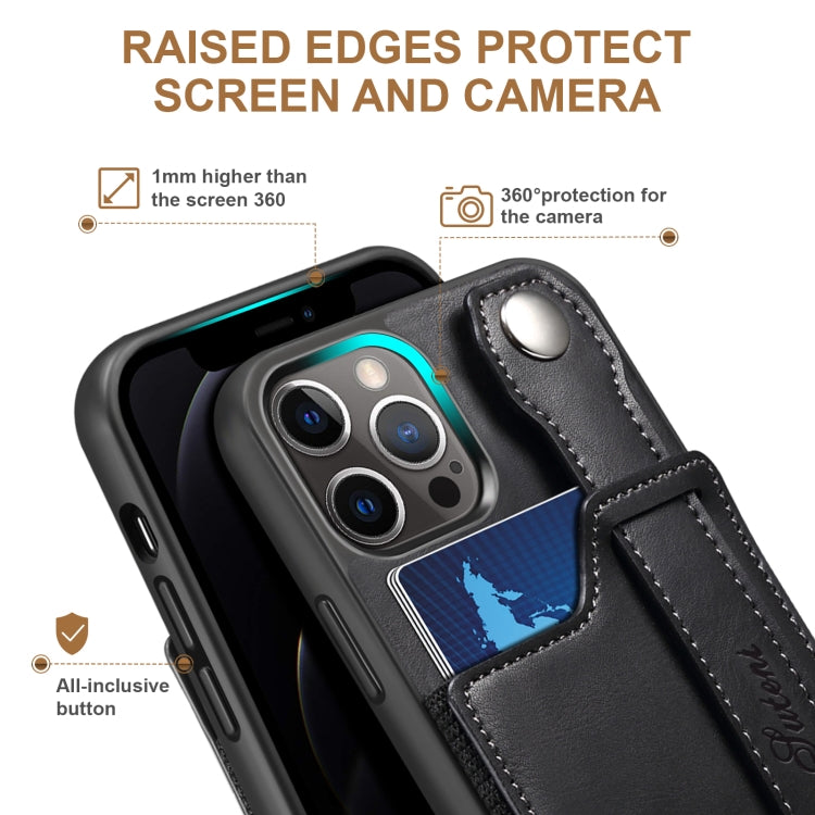 Correa de Muñeca Suteni 215 para iPhone 12 Pro Max Funda de Teléfono PU (Negro)