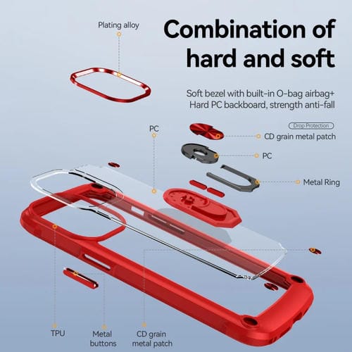 Estuche para Teléfono iPhone 12 Pro Max TPU + PC con Protección de Lente y Soporte para Anillo (Rojo)