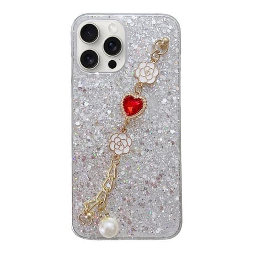 Funda para teléfono iPhone 12 Pro Starry Sequin Love Gem Chain Epoxy TPU (Plata)